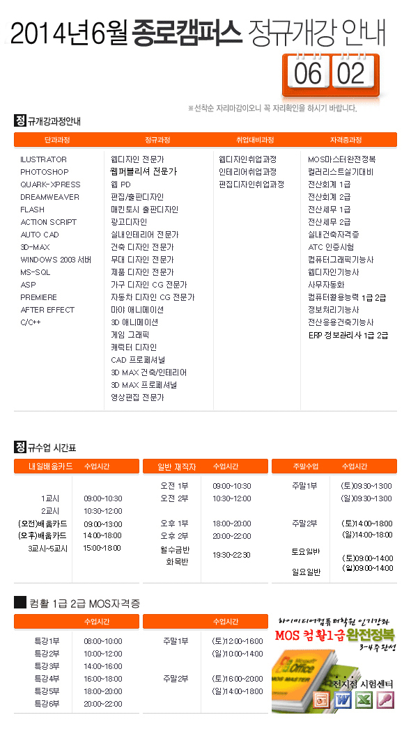 2014년 6월 개강일 안내
