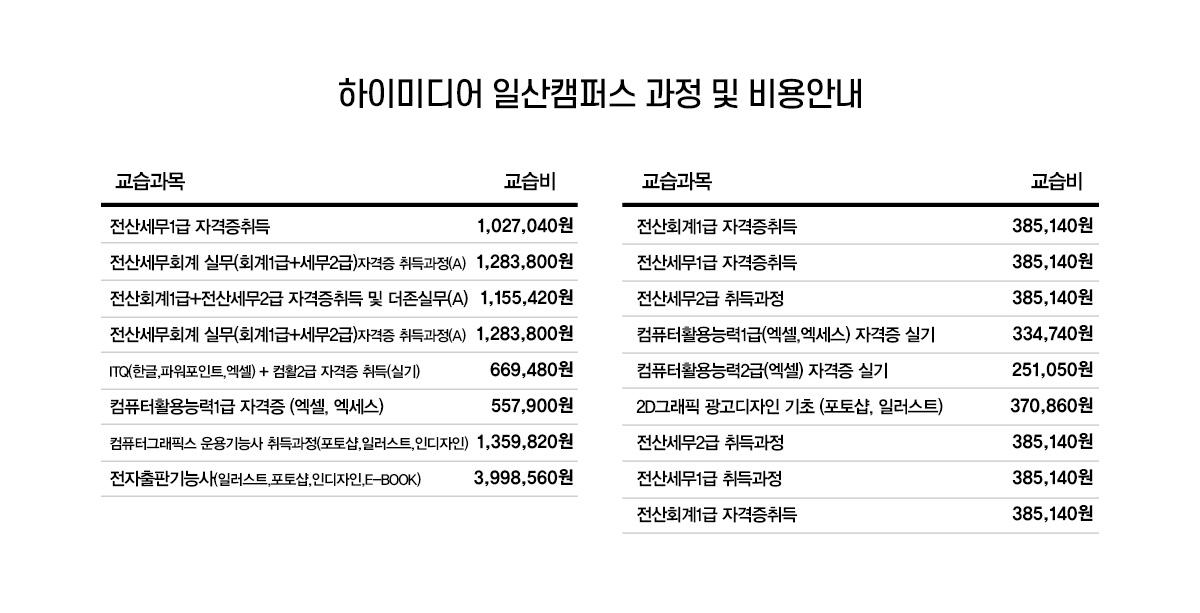 2019 일산캠퍼스 교습비게시표